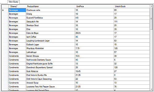 Также в конструкторе запросов есть вкладка Посмотреть результаты запроса (View), которая предоставляет возможность отобразить колонки данных, выбранные с помощью запроса. Также будут учтены операции в запросе: