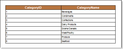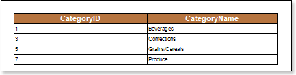 После нажатия кнопки Применить (Submit), генератор отчетов отфильтрует данные, и отобразит те данные, у которых CategoryID равен выбранному значению. На рисунке снизу представлен пример отчета с выбранным значением 4: